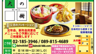 トンローの日本料理店「大の樹」が、タイの保健省、および観光庁よりSHAの基準を満たしている日本食レストランとして認定されました。