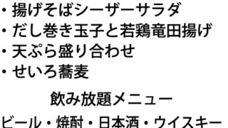 料理の内容は、・つきだし3種・ポパイベーコン・海老のにんにく焼・牡蠣の鉄板焼・牛バラ焼・とりの唐揚げ・ネギ焼き ...