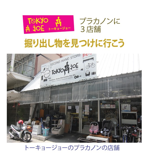 リサイクルショップの「トーキョー・ジョー」はスクムビットのソイ69から71へ抜けるソイ、通称ピーディー3通りで2店舗、BTSプロンポン駅から歩いてすぐのソイ39の3店舗を展開しています。