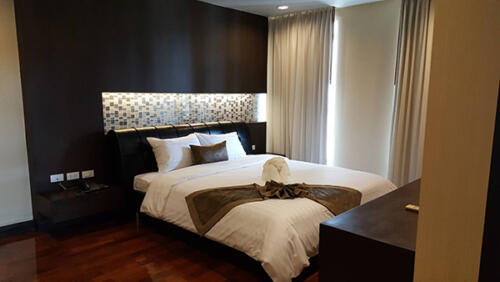 3ベッドルーム、3バスルーム、1ベッドルーム、専用バスルーム付き。プール、ジム、サウナ、子供の遊び場あり。ラマ4世通りとスクムビット通りのどちらにも出やすい。