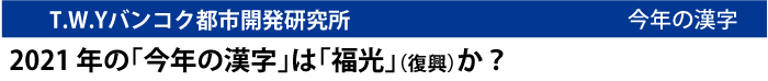 その年の世相を漢字一文字で表す師走恒例の「今年の漢字」2020年は「密」となった。これまで、2015年不「安」、2016年政治と「金」、2017年「北」朝鮮、2018年自然「災」害、2019年「令」和、2020年コロナNO!3「密」と2019年を除いてマイナスイメージの漢字ばかりであったが、2021年はどのような年になるだろうか?できれば、克服、復興の「福」の年になってもらえればと期待する。(YA)