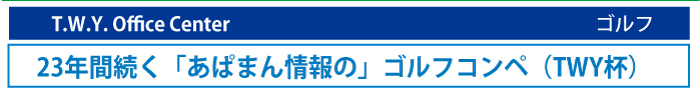 H23)と、上位3人が1打差という接戦勝負であった。TWY杯には、TWYのオフィスセンター等の入居テナントやその関係者であれば参加できますので、ご希望の方はご連絡ください。