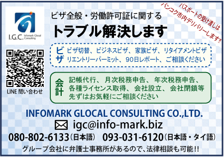 タイ滞在に必要な各種ビザや労働許可証(ワークパーミット)に関することなら「アイ・ジー・シー(Infomark Glocal Consulting)」にお任せください。