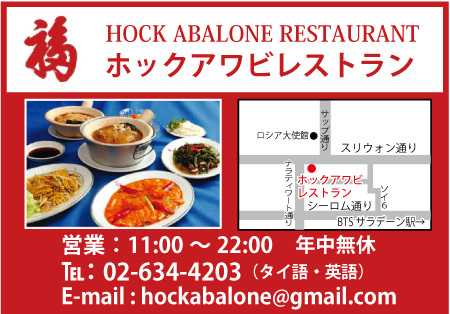 シーロムエリアの老舗フカヒレ、アワビ専門店の中華料理店「ホックフカヒレ(Hock shark Fins)」の店名が「ホックアワビ(Hock Abalone Restaurant)」に変更されました。