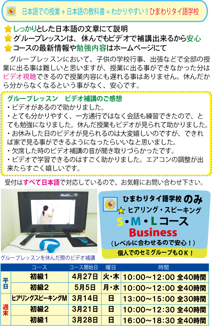 日本語での授業+日本語の教科書=わかりやすい!! ひまわりタイ語学校 NakamuraMoriyoshi 5年前 読了時間 1未満 分 2021年3月20日 タイ自由ランド掲載 Google Map 関連リンク -> ひまわりタイ語学校のホームページ 更新2021/3/20–->ひまわりタイ語学校のページ ->タイ語学校で学ぶ!人気トップ9選! -> タイ語学校-英語学校 ->タイ語レッスンの情報 ->タイ語学校の情報 ->ひまわりタイ語学校の情報