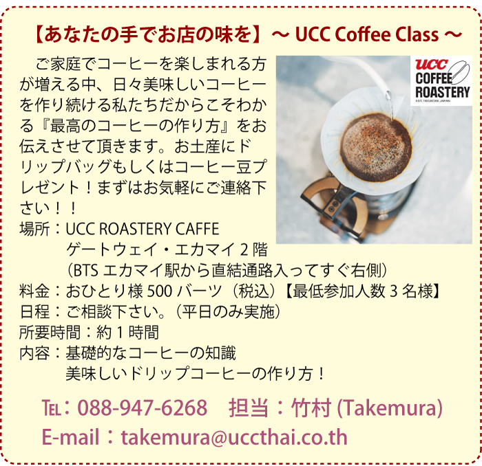 エカマイゲートウェイにあるUCCエカマイ・ローストリーの店舗またはGrabフードデリバリー、UCCの通販サイトで購入できます。