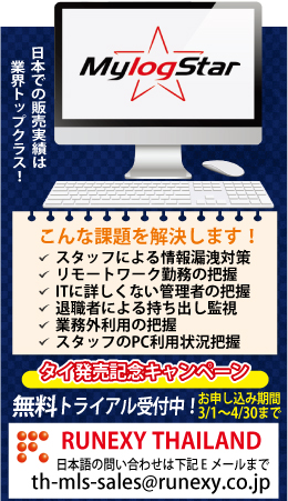 在宅ワーク中のスタッフが業務に関係のないことをしていないか、業務時間中の進捗状況などを管理するのに最適なのが「RUNEXY THAILAND (ラネクシータイランド)」が販売する「マイログスター」です。