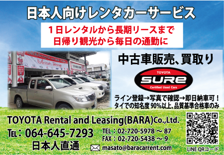 また、併設するトヨタレンタリースでは短期・長期のレンタカーもあります。日本人駐在員向けのドライバー経験者を多数採用しており、安心してご利用いただけます。ドライバーの派遣のみでも承ります。1日だけの利用でもお気軽にご相談下さい。