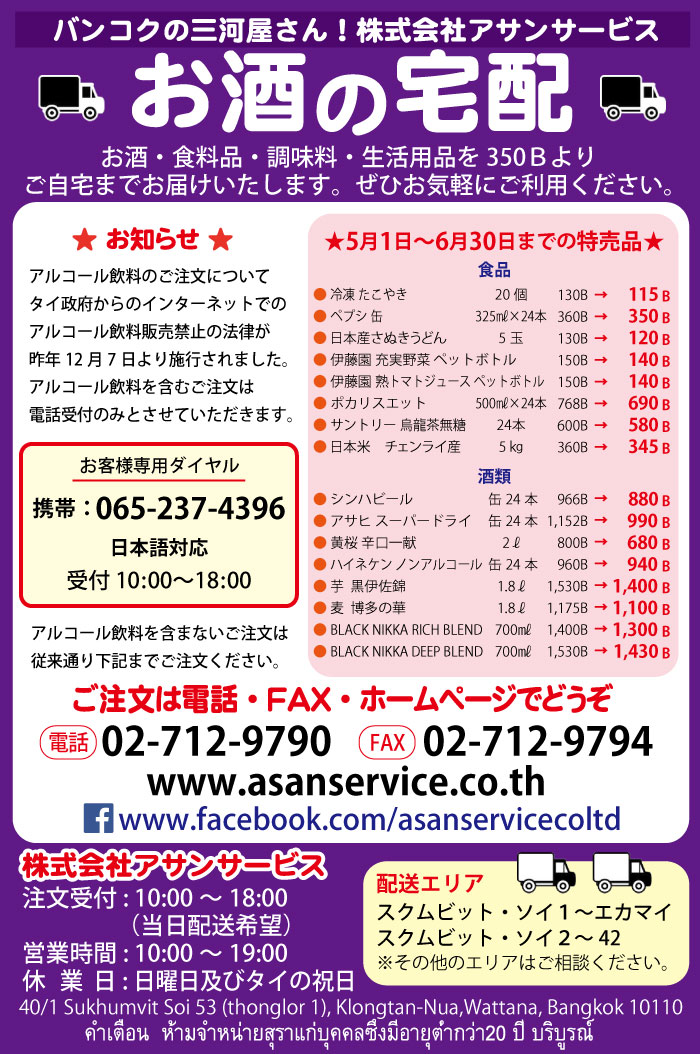 -> バンコクの三河屋さん「アサンサービス」のFacebook
