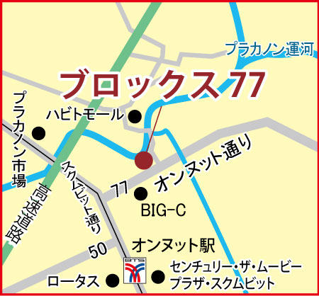 スクムビット通りソイ77のビッグC界隈も、今現在はすっかり居住エリアも増え、住居エリアとして安定してきました。このブロックス77が、できた当時は高層物件もほとんどなく、まだローカルエリアの物件といった感じでした。今現在も同じ並びに市場があったり、ビッグCの並びや脇は未だに下町の要素が多く残っています。噂ではソイ77で大々的に開発が行われると、まことしやかに囁かれています。この下町感が良い方には残念ですが、世の流れには逆らえないのも事実です。同じデベロッパーが掛けた橋を越えると、「ハビトモール」といった商業施設も開業し、飲食店も多く入店しています。このルートを抜けると、その先はモーターウェイの乗り場で、郊外や空港に向かうのは、非常に便利となっています。駅は10分程度で向かえ、ソイ77をさらに北へ10分程行ったところに「ピープルパーク」という商業施設も数年前に開業しています。そんな状況で一昔のタイ人居住区から、インターナショナル居住区にすでに変わっています。