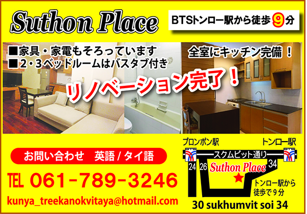 スクムビット・ソイ34から少し入ったところにあるアパート「ストンプレイス」がリノベーション後の入居者を募集中です。