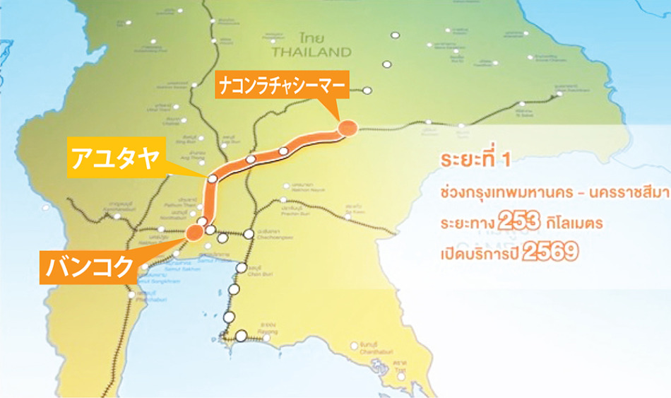 タイー中国政府主導によるハイスピードの高速鉄道はまず第1期として、バンコクーナコンラチャシーマー(コラート)間の253 kmで工事が進められており、5年間の2026年に完成予定。その区間の駅としては、バンスー中央駅、ドンムアン駅、アユタヤ駅、サラブリー駅、パクチョン駅、ナコンラチャシーマー駅で、この区間を1時間半で結ぶ。