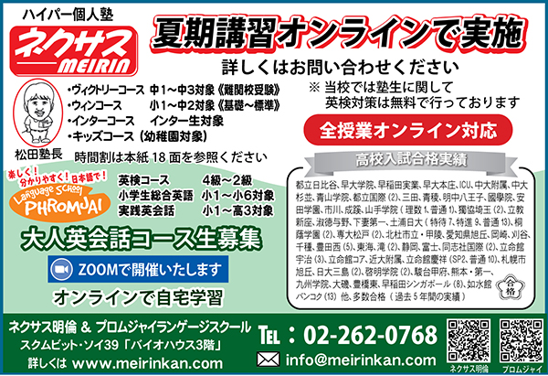 同塾はタイで20年以上の実績があり、日本の有名進学校へ毎年多くの合格実績を誇っています。小中学生向けにさまざまなコースがあり、塾生には英検対策を無料で行っています。