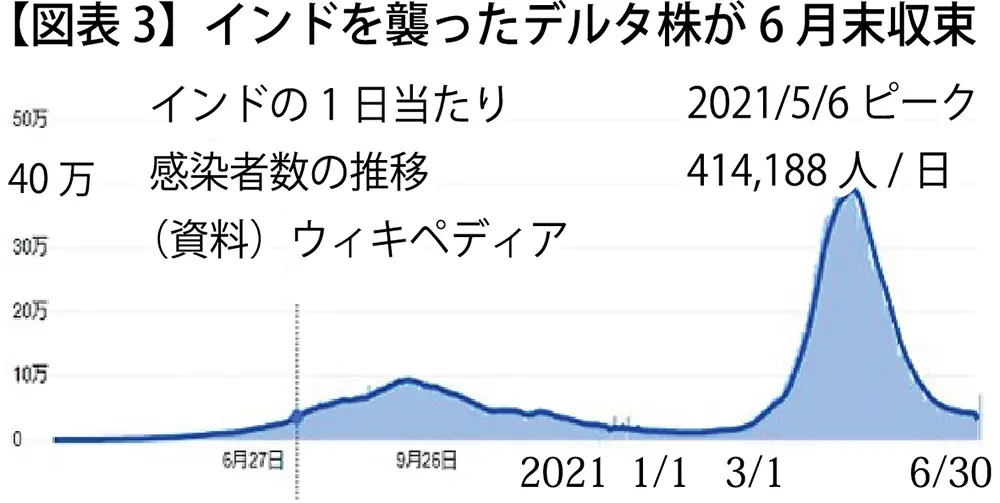 読売新聞によると、中外製薬はほかにも、幅広い症状に対応できる飲み薬の治験を進めている。自社開発した関節リウマチ治療薬「アクテムラ」を新型コロナ向けに転用できるよう、年内にも国内に承認申請する方針という。また、塩野義製薬は、服用から数日でウイルスが消滅する薬の治験を始めたいという。日本トリムの関連会社ヒューマンライフコートでは、へその緒に含まれる幹細胞を使って重症者の治療に使える薬を開発しているという。日本の製薬各社はコロナ治療薬の開発で、世界に巻き返しを図っている(図表6)。 (注1)WHOはイベルメクチンについて、2021年3月31日「証拠が非常に不確実」の理由で「新型コロナにイベルメクチンを使うべきではない」という指針を発表した。当初、インド連邦政府や州政府の多くはこの指針に従い、使用を禁止する州も出るなどして、同薬の使用に遅れが生じたが、感染急拡大を受けていくつかの政府は独自に治療基準を改訂し、イベルメクチンの使用を打ち出すようになった。