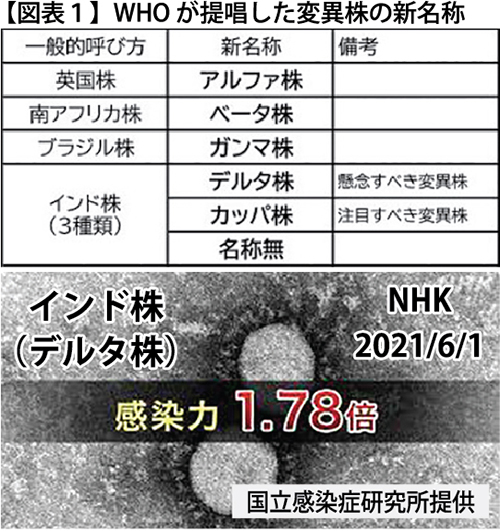 ロイターによると、世界保健機関(WHO)は2021年5月31日に「懸念される」新型コロナウィルス(以下、「コロナ」という。)変異株4種類の名称について、ギリシャ語のアルファベットを使用すると発表した(図表1)。これまで「B.1.351」といった科学的な名称が使われていたが、複雑すぎるとの批判やウィルスが最初に検出された国や地域の名称を用いることで、マイナスのイメージを植え付けたくないという。