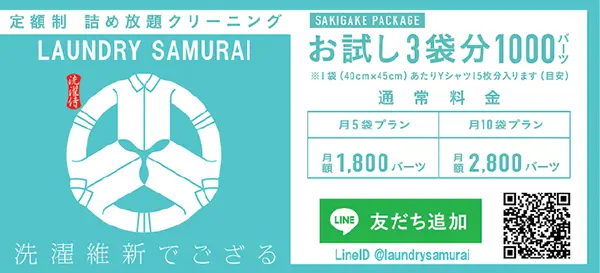早くて安いクリーニングサービスなら「ランドリーサムライ」をご利用下さい。下の広告も参照で。