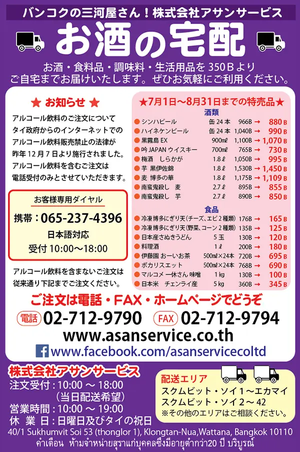 -> バンコクの三河屋さん「アサンサービス」のFacebook