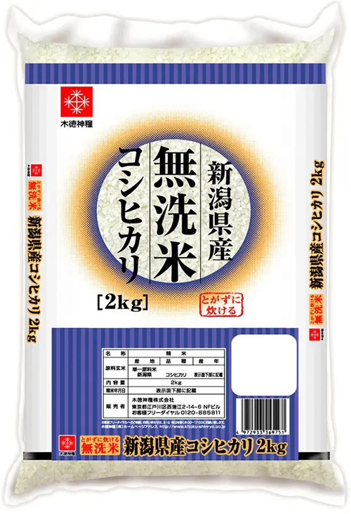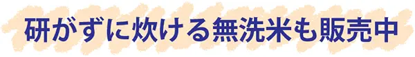 無洗米は新潟のコシヒカリ(2㎏入り370バーツ)、岩手のひとめぼれ(2㎏入り360バーツ)を販売中です。無洗米は長期保存向きのために特化したお米で、日本の優れた精米技術により、米のヌカ層を極限まで取り除いています。虫の発生もなく、米のとぎ汁を出さない環境にやさしいお米です。