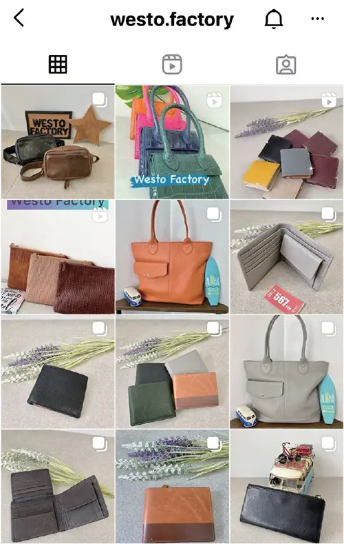 Westo Factoryの革製品は、熟練した職人がハンドメイドで縫製した、良質なバッグやお財布など、本来日本に輸出される高品質な革製品を、ここタイで日本よりもお値打ち価格でお買い求め頂くことができるのが魅力のひとつ。