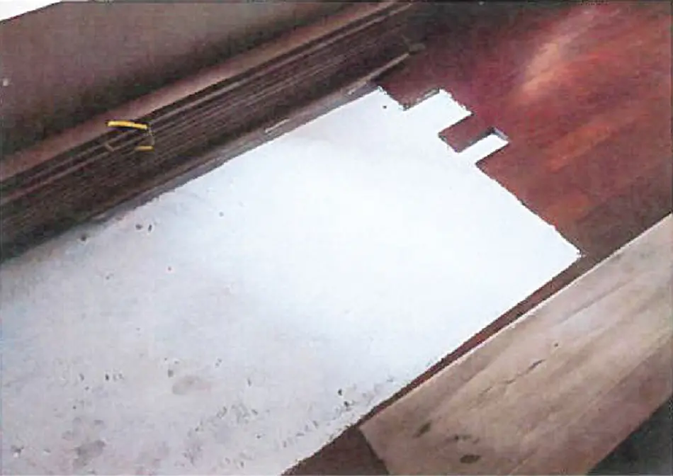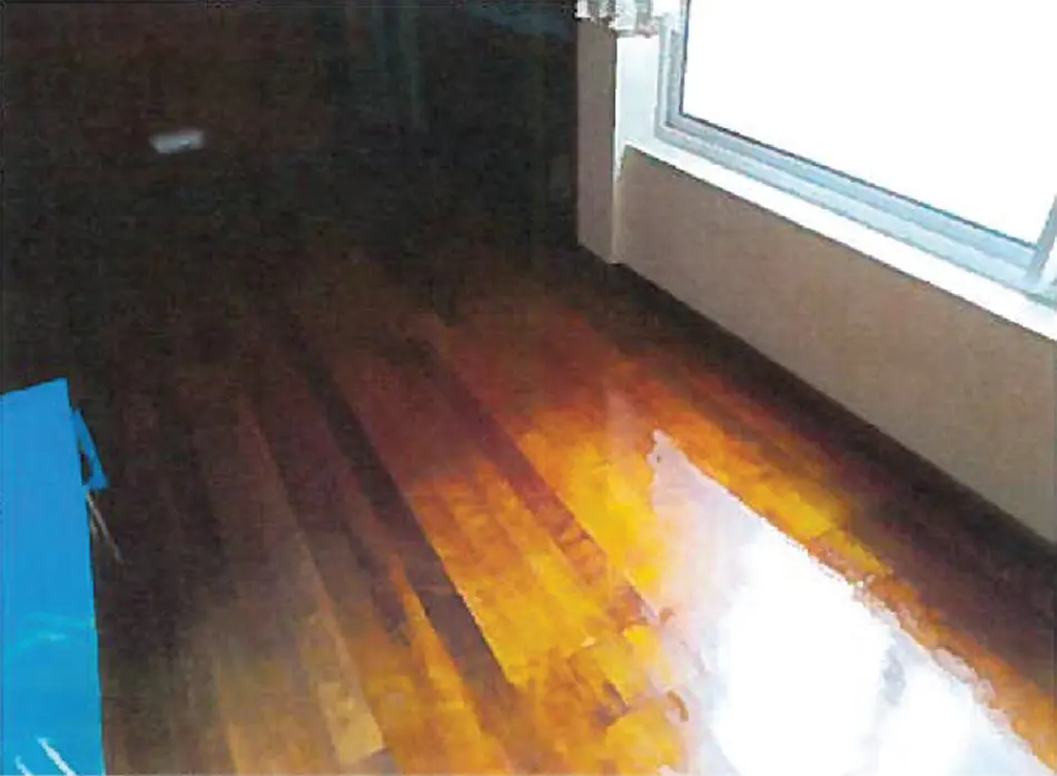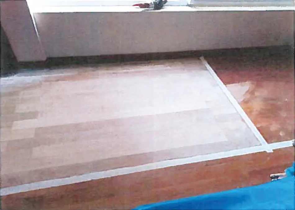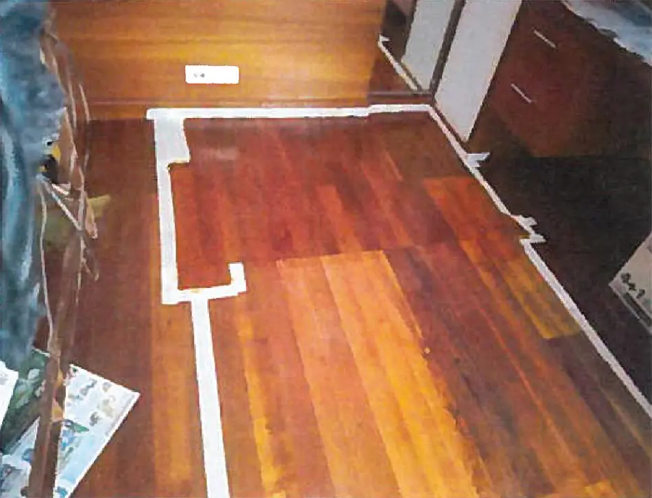 右の写真のようにフローリングの一部が損傷していた場合は、傷んだ部分のフローリングを剥がして、新しい資材でフローリングを張ります。床材の色を回りに合わせて塗装して、ニスで仕上げるときれいに仕上がります。