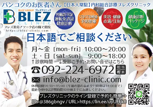 日本人通訳常駐の「ブレズクリニック」では、労働許可証取得や更新の際に必要な健康診断も随時受け付けています。