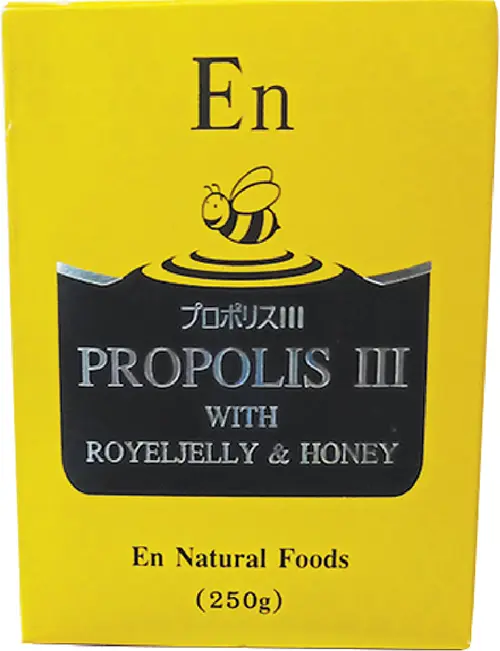 プロポリスの主な成分はビタミンCを除く各種ビタミン、ミネラル、酵素、それに20種類以上からなるフラボノイドなどです。プロポリスの効能としては免疫力を高め、炎症を抑える働きがあり、抗がん作用や抗ストレス作用など多岐にわたり、毛細血管を強くする働きやアレルギー症状を抑える働きなどもあるとされています。からだの酸化を防止する働きもあるので、生活習慣病予防や老化のスピードを遅らせるのにもお使いいただけます。
