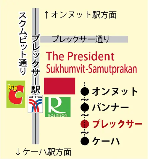 BTS駅、ロビンソンが目の前、ビッグCへも徒歩約1分!今年竣工したばかりの「ザ・プレジデント・スクムビット・サムットプラカン(The President Sukhumvit-Samutprakan)」の紹介です。