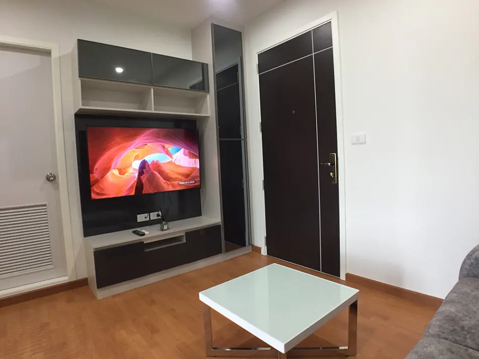紹介の部屋は31階、1ベッドルーム、32平米、リバービューの部屋が1ヵ月の賃料で何と11,000バーツです。間取りはビルドイン収納が充実しており、鏡面仕様のシューズボックス、クローゼットの容量も多く玄関入ってすぐキッチンという間取りではありません。キッチン台が両面にあり効率的にスペースを設けております。アンドロイドTV、ドラム式洗濯機、ソファーベッドが設置され、家具家電も値段以上のグレードとなっております。動画にて物件の雰囲気もご確認いただけます。