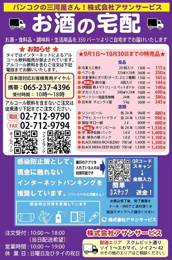 更新2021/9/5->バンコクの三河屋さん「アサンサービス」のページ