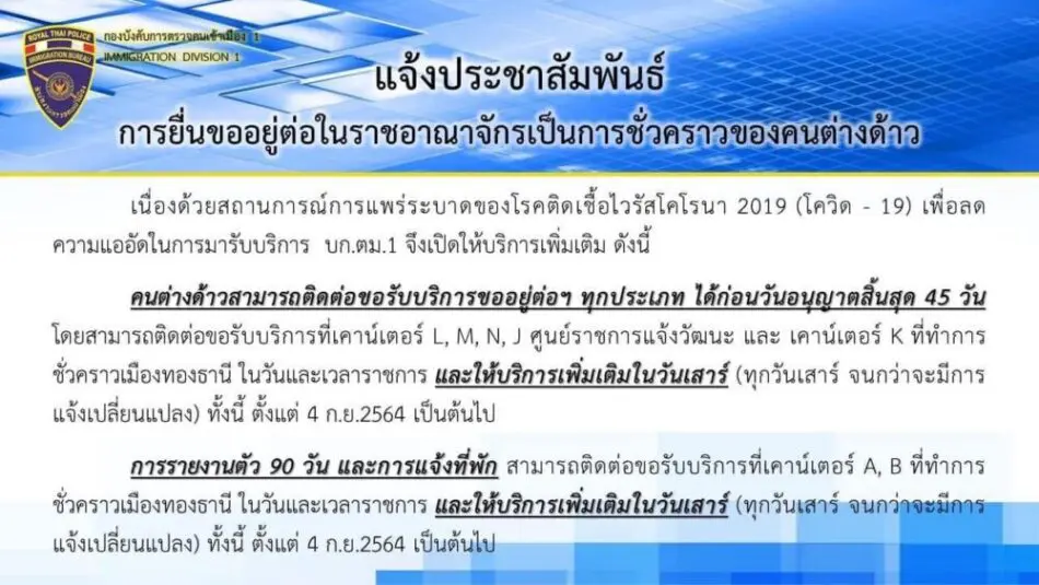 90日ごとの出頭、TM30の申請、コロナ期間の延長手続きの受け付けは、チェンワッタナの近くのムアントンタニーで行っているので気を付けたい。