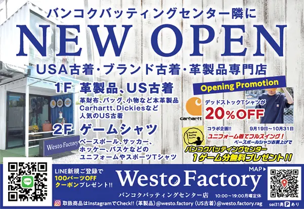 スクンビット31奥に、バッグ・革製品専門店「Westo Factory」の新店舗バンコクバッティングセンター店がオープンします。