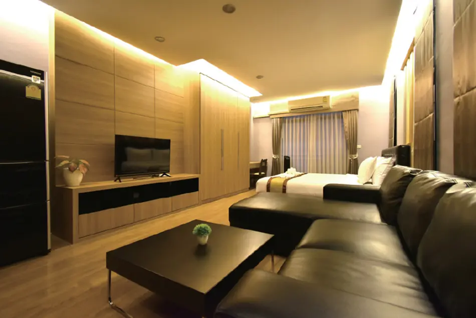 フロントサービス、室内清掃、ベッドメイキング、リネン交換などの基本的でかつシンプルなサービスが付いており、各部屋には、たっぷり収納棚とキングサイズベッド、キッチン、バスタブ、洗浄付き便座、エアコン、冷蔵庫、洗濯機、電子レンジが設置されており、日本のテレビ番組が視聴できるインターネットTV、WiFiサービスなども標準仕様で月額20,700バーツから。日本人経営の安心で快適なシラチャでの生活をお約束します。