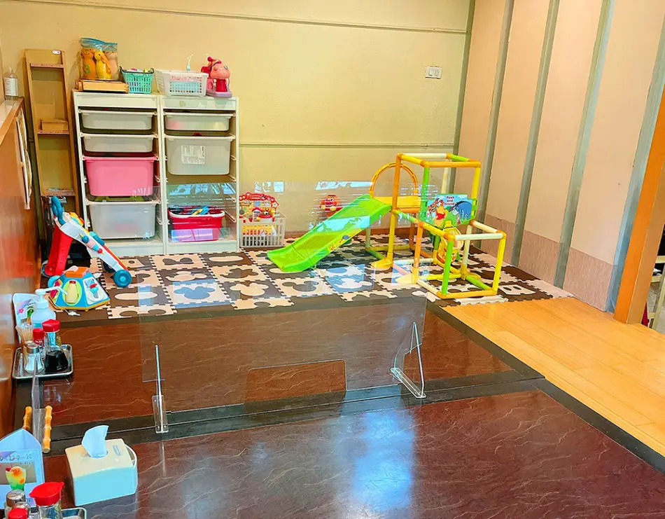 キッズスペースのある部屋は通常時は、2組まで利用頂けますが現在は、1組のみとさせて頂いております。