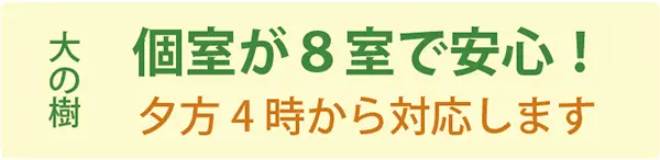 大の樹は個室が8室で安心! 夕方4時から対応します