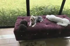 天然芝のドッグランで走り回って、落ち着いたところでみんな室内の涼しいところへ戻って行きました。ドッグランは取り寄せた綺麗な土を20センチ、その上に天然芝を敷き詰めていて、ペットホテルに泊まっている犬もここで自由に遊ばせてもらえます。