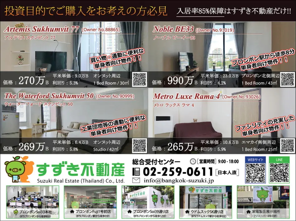 【すずき不動産の新規コンドミニアム】アルテミス・スクムビット 77 タワマンで次々モールも完成