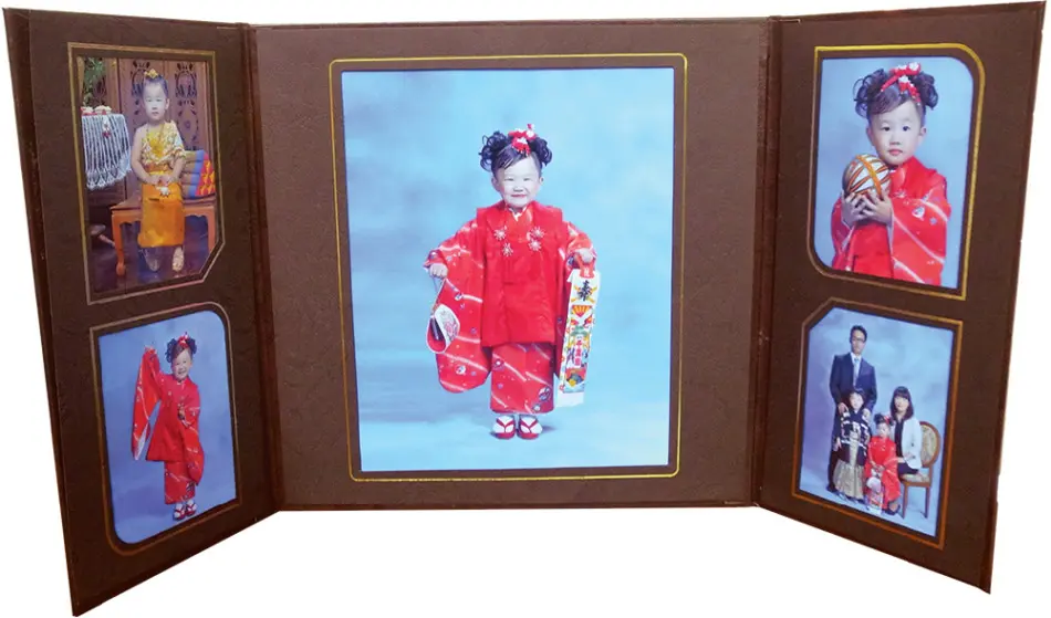 七五三の衣装、タイ衣装、家族との記念写真が入った豪華台紙のアルバム。衣装や着付け代も込みでお得