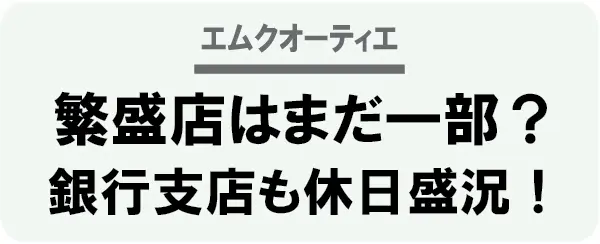 エムクオーティエ 繁盛店はまだ一部? 銀行支店も休日盛況!