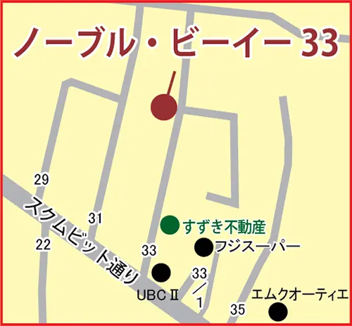 今回の物件はソイ33の奥ではありますが、駅まで徒歩8分と充分歩ける範囲です。しかもシャトルサービスもあり、駅はもとより多少遠方でも送り届けてもらえます。