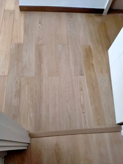 私はタイ語が全然だめなので便利屋さんが私が言うことを大工さんにきちっと指示してくれました。張り替える床材のサイズは同じのを見つけてくれましたが、色は同じものがあませんでした。そこで、色を調合し、今までのフローリングとも調和するように着色してくれました。おかげで、床のブカブカは解決しました。お客様にも不快な思いをさせず、住んでいただけると思います。