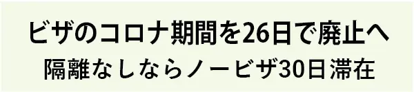 ビザのコロナ期間を26日で廃止へ 、隔離なしならノービザ30日滞在