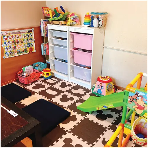 通常は、キッズスペースのある部屋は2組まで利用できますが、コロナ感染予防のため現在は、一組のみの利用となっています。