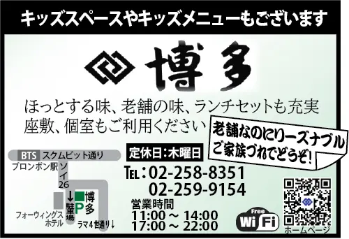 キッズスペースのある個室も完備しているスクムビット・ソイ26の老舗日本料理店「博多」。