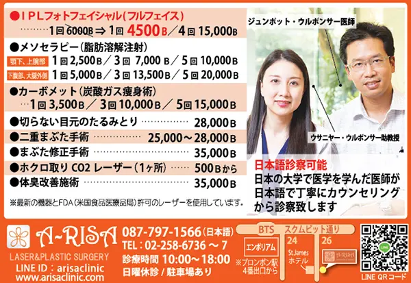 日本語で診察を受けられるスクムビット・ソイ26の「エーリサクリニック(A-RISA)」。