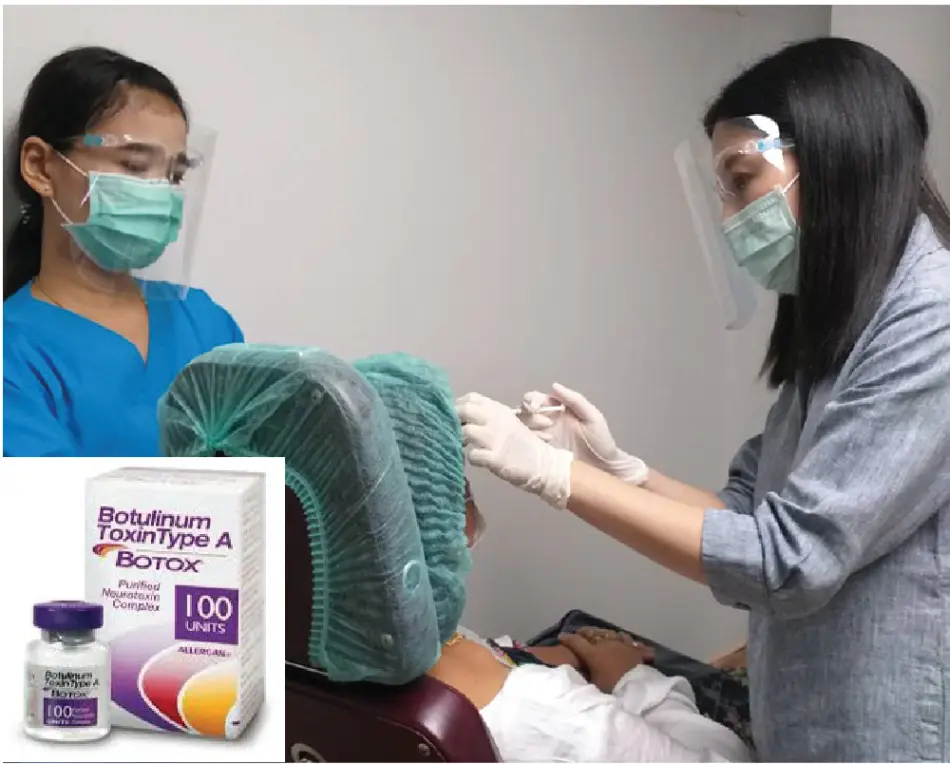 ボトックスとは米国のアラガン社の登録商標で、成分は主にボツリヌス菌という細菌からつくられるボツリヌストキシンというタンパク質の一種です。このボツリヌストキシンを局所に注入することにより、筋肉の動きを持続的に麻痺させる効果があります。