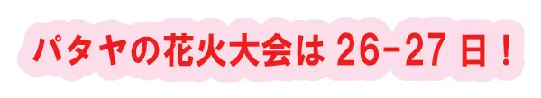 この11月、12月の毎週土、日曜はパタヤ・ミュージックフェスティバルで、12月3~4日はナクルアのロンポーパークで、ナクルアでは出店等の催しも同時に行われる。12月10~11日はセントラル・パタヤで。