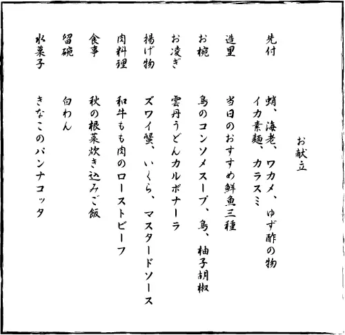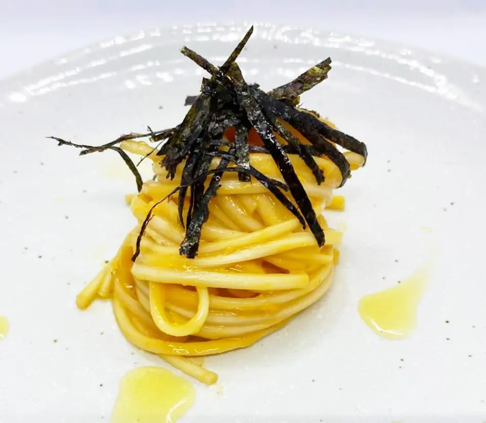 11月のコースの一品「雲丹うどんカルボナーラ