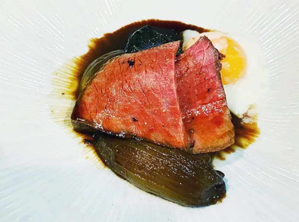 11月のコースの一品「和牛もも肉のローストビーフ
