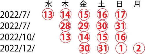 2022年の祝日等は19日としており、予定では以下のようになっている。