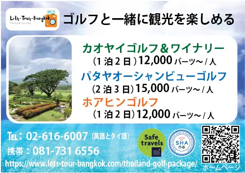 ほかにはパタヤやカオヤイなどのゴルフと観光のパッケージもあります。ホテルのグレードアップや食事の手配もできるので、詳しくは問い合わせてみて下さい。